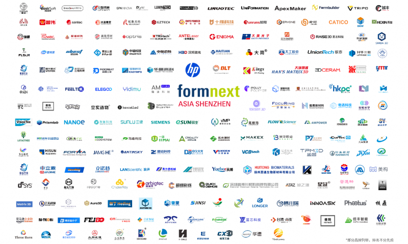 3D打印设备商:铂力特、华曙高科、汉邦激光、海天增材、易加增材、中航迈特、英尼格玛、融速科技、希禾增材、大族聚维、联泰科技、倍丰智能、中瑞科技、金石三维、众智信赢、创瑞激光、赛隆增材、协同高科、惠普、易制科技、盈普三维、蓝芯科技、纵横三维、普利生、十维科技、中立鼎、光垒智造、3DCeram、创想三维、智能派、博理科技、创联科技、一迈智造、复志科技Raise3D、兴晟精密、易智三维ApexMaker、空实科技、华煜远行、艾瑞旺、依迪姆、环聚激光、升华三维、孚森FLSUN、融跃电子、江苏乾度、Aura3D、众化智能、长朗科技、洋明达、君璟科技;材料展商:中体新材、金物新材、威拉里、有研增材、众远新材料、旭阳新材、品德新材、欧中科技、冠达、eSUN、Kexcelled、三绿SUNLU、法国Nanoe、鑫博川、海正生物材料、神说科技、康勋新材、惠通生物、云火材料、聚塔时代、优倍特材料、宁美科技、天工股份、铖丰材料、非力特、谱丽美新材料、星尘科技、南通强生、超维彩线、杰嘉友;其他技术/服务商(软件、综合解决方案或跨领域企业):FLOW-3D、Tripo AI、中久大光、飞博激光、大族光子、维什激光、安特激光、创想生态、创想三帝、中科祥龙、德亿纬、今奇玩具、知象光电、马路科技、非白三维、星特烁、新帕泰克、弗兰德、艾弗尔、CurTec、汇盈通、倍思软件、精实研能、光至科技。