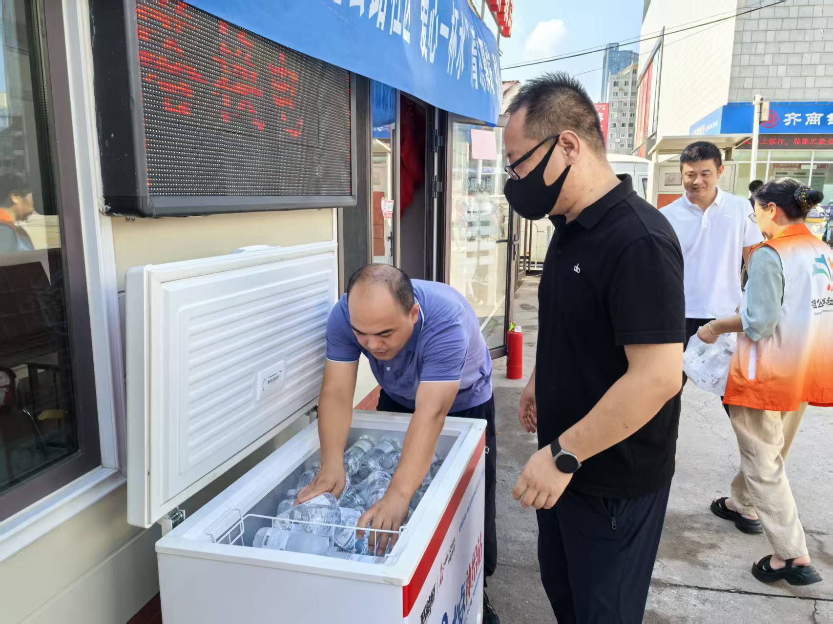 持续高温天气下,众多户外劳动者仍穿梭于城市的大街小巷,保障社会有序运转和市民日常生活。为切实缓解他们在高温环境下的工作压力,本次活动特别设置专用冰柜,供应大量冰镇矿泉水,方便一线劳动者随时领取,以实际行动为他们送去关怀。
