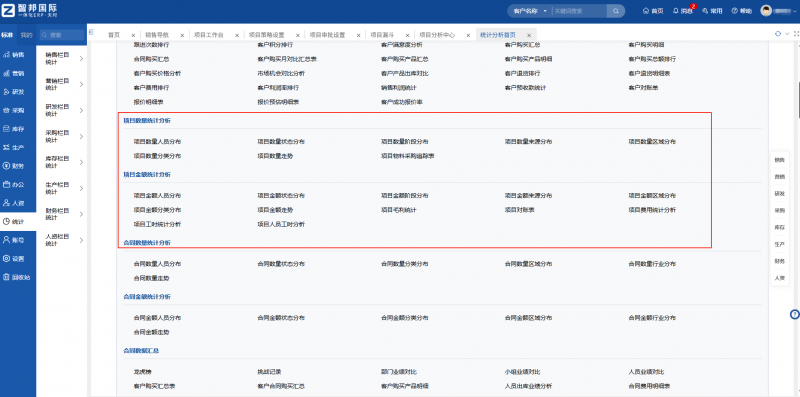 (智邦国际一体化ERP:项目统计局部图)