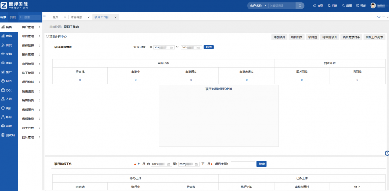 (智邦国际一体化ERP:项目工作台局部图)