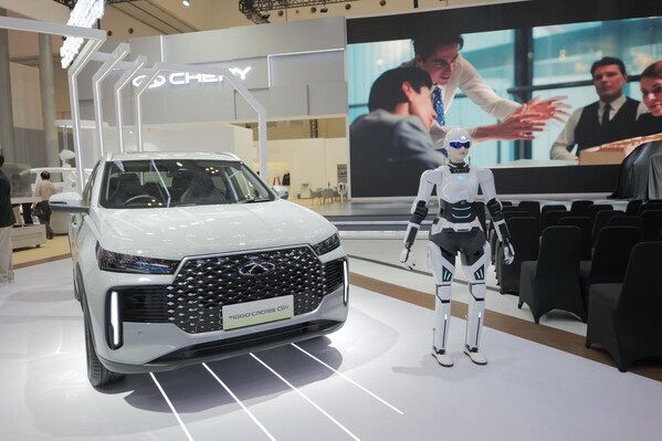 部长驻足观看墨甲机器人绕车讲解TIGGO CROSS车型