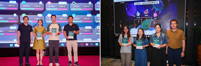 活动现场还设置了趣味性的有奖问答环节,多名幸运嘉宾获得了精美奖品,气氛热烈。有好几位幸运嘉宾更收获了范建华教授亲笔签名的学术著作《微藻生物合成与转化》,大家都非常开心,并与两个教授合影留念,成为研讨会上的难忘瞬间。