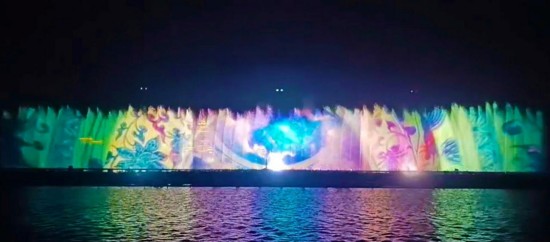 科视ChristieCrimson WU32投影机打造出宽180米、高18米的壮丽水幕投影