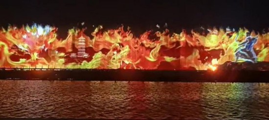 北京中清未来科技有限公司供应并安装的10台科视ChristieCrimson WU32激光投影机,共同构筑起18米高的巨型水幕,为震撼人心的叙事提供出色载体。在这片虚实相生的浩瀚水域间,观众将沉浸于后羿射日、精卫填海、夸父逐日、大禹治水等经典神话场景。这些沉浸式投影勾勒出巍峨山河的磅礴气象,带来震撼心灵的视觉体验。