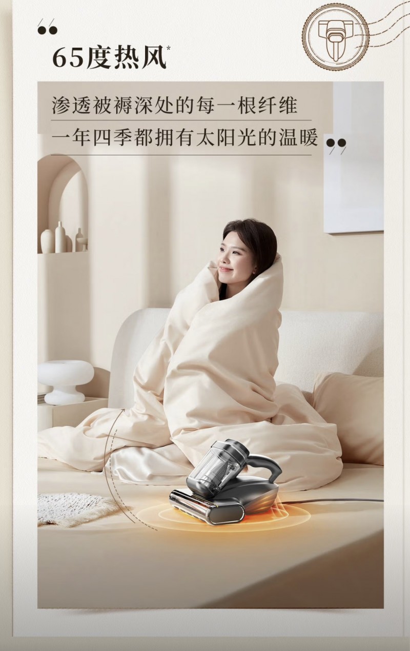 4. 65℃热风除湿,99.9% 抑菌率从根源抑螨