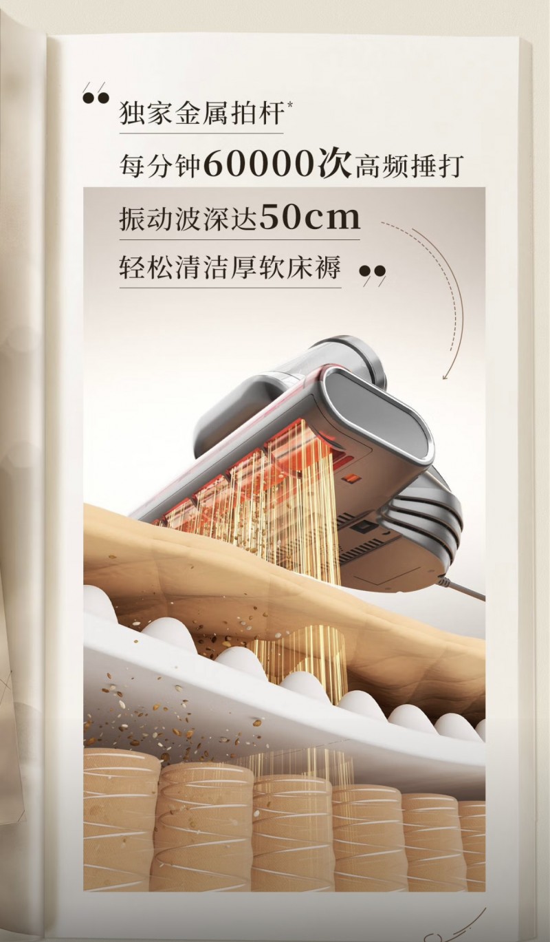2. 60000 次 / 分钟高频拍打,创新设计震出深藏螨虫