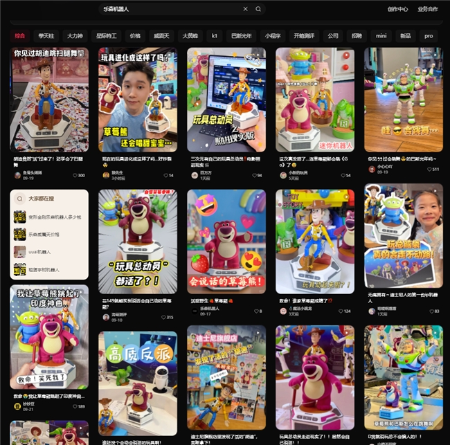 而从零售商的角度来看,Mini Robot带来了传统玩具所不具备的体验属性,让线下门店有了“互动式消费”的场景优势,不再局限于展示和售卖。目前在小红书搜索这款产品,能看到用户在门店体验并创作出了“美美桑内”、“扫腿舞”等结合时下热点创意的UGC内容,极大地提高了用户的留存和问询率。