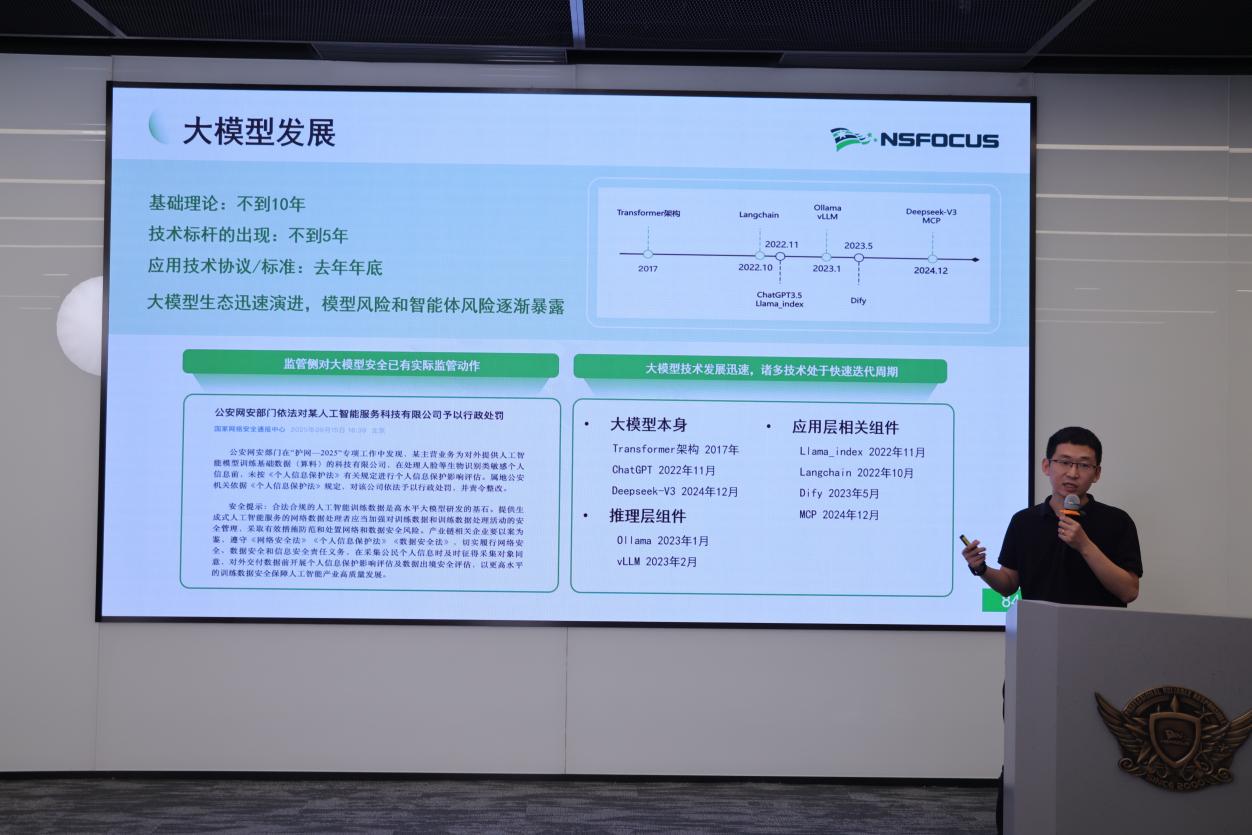 发布会以客户最为关心的大模型安全防护为目标,围绕政府、金融、运营商等关键领域的核心需求,系统地介绍了绿盟科技在总体规划、场景防护、技术产品和专业服务方面的思考与实践,为各单位和从业者提供参考,助力大模型在安全合规的轨道上稳健发展。