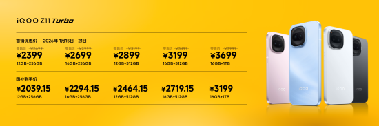 此次 iQOO Z11 Turbo 提供五款存储版本,首销优惠价2399元起,叠加国补后低至2039.15元。这款集强性能、好影像、高质感于一体的中端机,将成为跨次元玩家的全能伙伴。