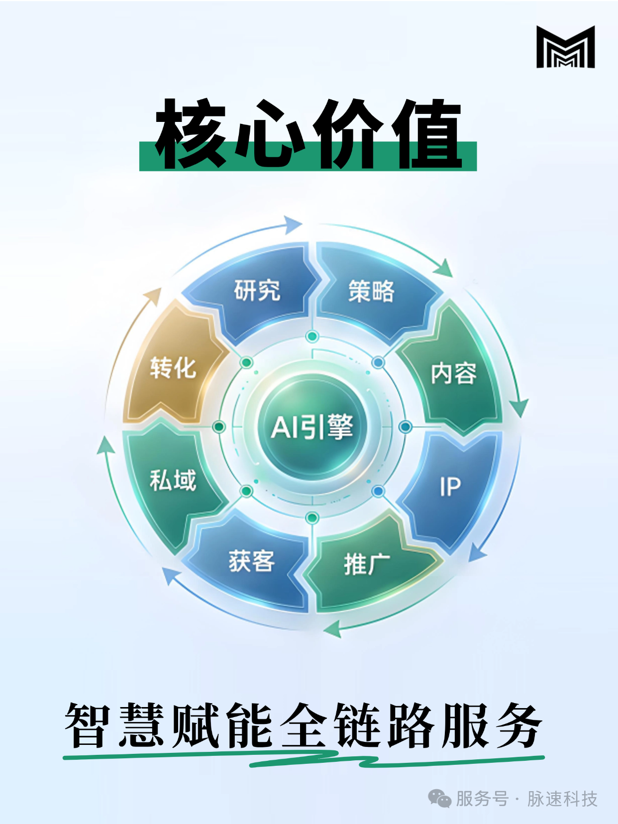 为企业提供定制化私域客服系统搭建、智能话术配置及客户分层管理支持。助力高效承接私域流量,在降低人工成本的同时提升响应效率,实现客户的高粘性留存与复购转化。为什么选择脉速健康?我们不只是顾问,更是你的智能化营销闭环合伙人。脉速集结了深度市场调研、营销规划、内容创作、IP打造、AI全域推广、精准获客、私域运营及订单转化于一体。通过提供“企业顾问 + 智能化营销闭环”服务,助力企业在AI时代重塑增长逻辑。