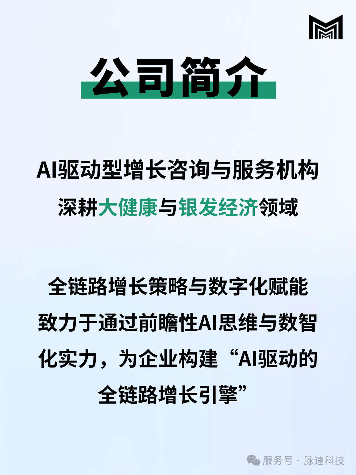 脉速健康:大健康与银发经济的数智增长引擎,AI驱动型增长咨询与服务机构
