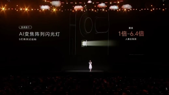 针对人像拍摄痛点,新机搭载安卓首个 AI 变焦阵列闪光灯,5 灯 X 阵列结构可覆盖 23mm-148mm 全焦段,中心照度达 200Lux,能根据拍摄焦段智能调节光线。叠加 AI 闪光大师、灵感帮拍、AI 追色等功能,普通用户也能轻松拍出质感人像。