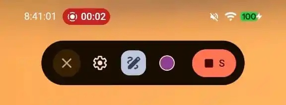 录制开始后,胶囊控件会自动隐藏至状态栏,点击即可唤出;在录制过程中,用户可访问相关设置,也可以使用多种颜色的画笔进行涂鸦;录制结束后,系统还会提供预览界面以便用户快速分享或编辑视频。