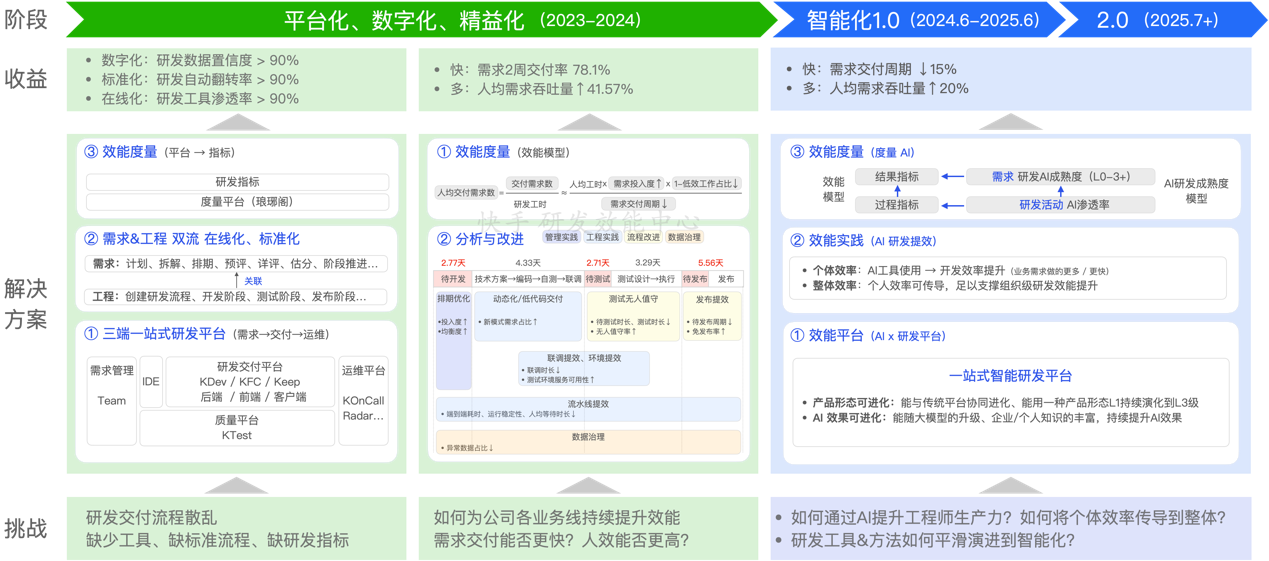 快手的经验是——先打牢平台化、数字化、精益化的基础,再用 AI 系统化改造研发范式,让个人的提效能真正汇聚成组织的提效。