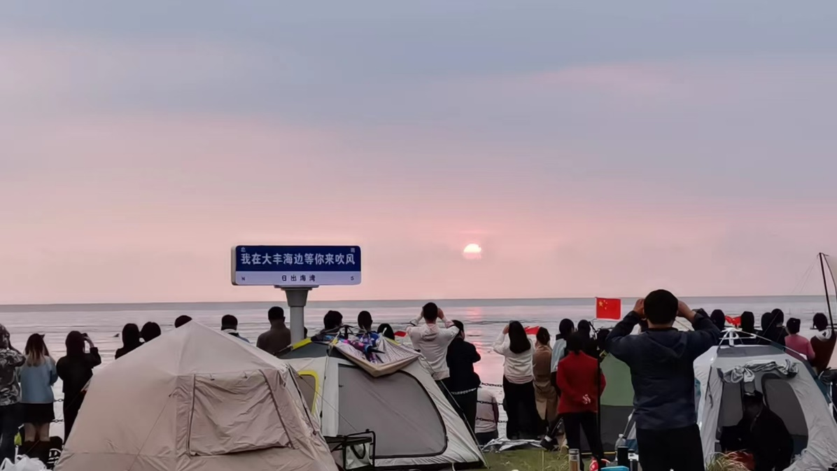 腊月廿五,盐城大丰。从上海第一次回婆家过年的设计师周晓鸥和丈夫站在滩涂边等日出。晨光跃出水面的那一刻,她按下了录制键,把冬日清晨的日出分享进家族群。早起的爸妈叔婶们在群里秒回“好看”和大拇指,情绪价值给得够快够足。