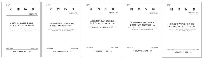本次修订的五项团体标准,全面覆盖基础安全与主流高速率通信融合技术领域,具体包括:T/WAPIA 007.1—2026《无线局域网产品工程化实现指南 第1部分:WAPI与IEEE 802.11n》、T/WAPIA 007.2—2026《无线局域网产品工程化实现指南 第2部分:WAPI与IEEE 802.11e》、T/WAPIA 007.8—2026《无线局域网产品工程化实现指南 第8部分:WAPI与IEEE 802.11ac》、T/WAPIA 007.9—2026《无线局域网产品工程化实现指南 第9部分:WAPI与IEEE 802.11ad》、T/WAPIA 007.10—2026《无线局域网产品工程化实现指南 第10部分:WAPI与IEEE 802.11ax》。