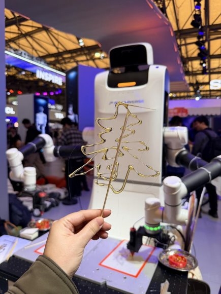 无论是经典的生肖造型还是复杂的图案,在大白机器人的手中皆栩栩如生。这一场景不仅让观众领取到了充满“科技味”的非遗糖画,更直观展示了普罗宇宙机器人将工业级精密制造的极致掌控力与非遗技艺的完美融合。大白机器人在糖画创作中展现出的极致细腻与稳定,成功打破了大众对工业机器人“冰冷、僵硬”的刻板印象,成为本届AWE最热门的打卡点之一。