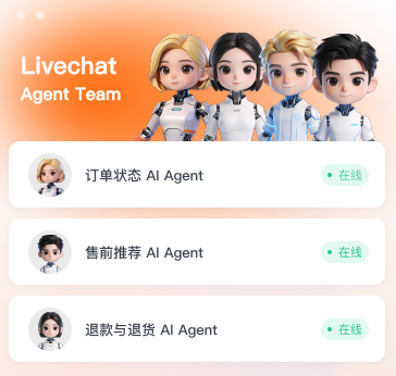 平台打造了覆盖出海客服全场景的Agent矩阵,针对不同服务环节精准分工: