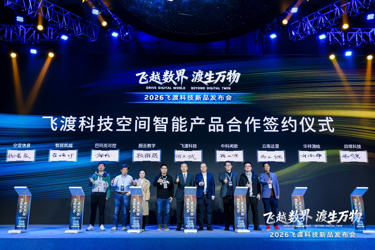 发布会尾声,一场签约仪式将气氛推向高潮。飞渡科技与丰图科技、中科闻歌等企业签署战略合作协议。多方将在技术研发、场景落地、生态共建等领域深度协同,共同推动空间智能技术在智慧城市、工业互联网、低空经济等领域的规模化应用。这不仅是商业上的合作,更是一个开放共赢的产业生态的雏形。
