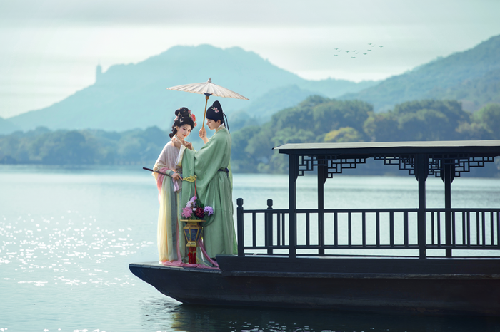 (山水画意汉服婚摄风格展示,图片来源:良辰集)