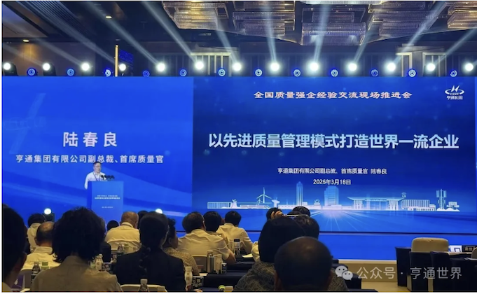 会上,陆春良分享了题为《以先进质量管理模式打造世界一流企业》的报告。报告中分享了亨通“四全两面”质量管理模式及经验做法:企业的经营发展,必须立足客户、放眼全球。因此必须塑造“面向客户的质量信誉”,打造“面向全球的质量品牌”。首要任务是为市场提供高标准、高质量、高领先的卓越产品和方案。这要我们通过“全栈式自研突破核心技术”,掌握全产业链与供应链的自主可控权,从源头确立竞争优势。通过实施“全数字化赋能质量管理”,打通质量全生命周期管理,构建覆盖全产业链的追溯体系,实现质量管理效率与决策水平的跨越式提升。同时,“全方位夯实质量基础设施”,通过投入高端实验装备、坚持标准引领、完善认证认可,推动产业升级、保障产品质量、提升国际竞争力。