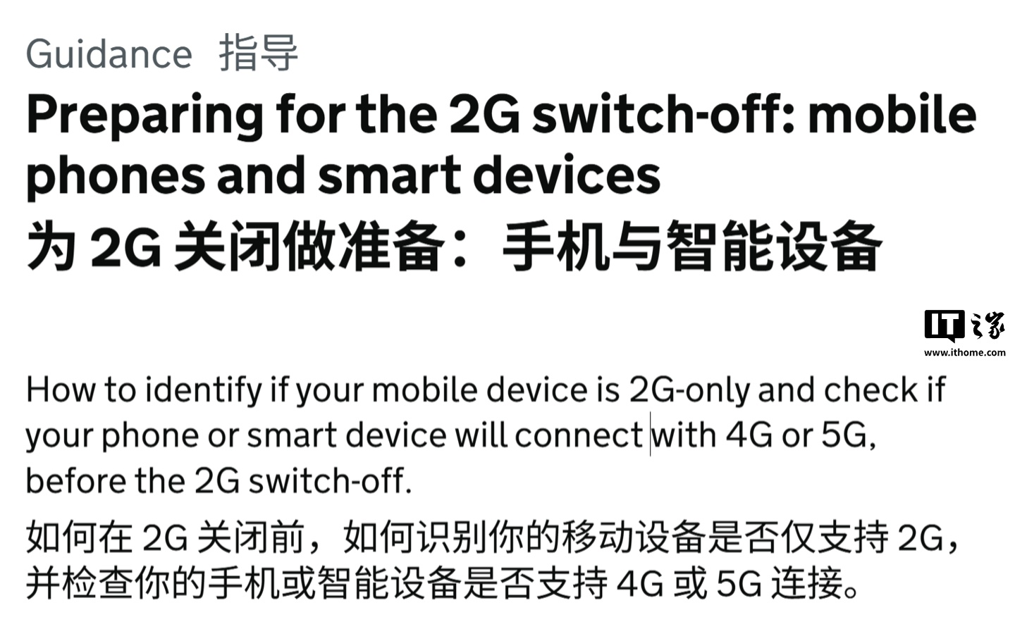 3 月 25 日消息,英国政府昨日(3 月 24 日)发布官方指导意见,帮助普通用户和企业提前应对 2G 移动网络关闭计划。根据官方规划,英国将在 2029 年至 2033 年期间全面清退 2G 网络。