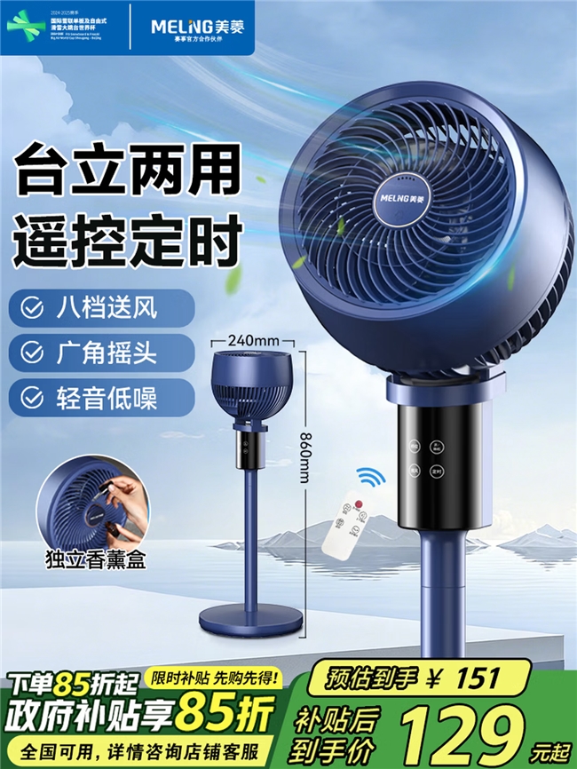 核心亮点:8.7cm超薄机身、14米送风、25m³/min风量、8种自然风、26.8分贝低噪