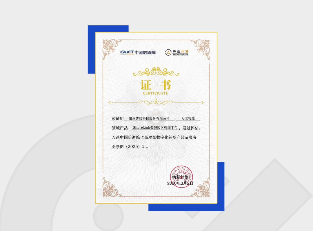 能够入选该全景图,不仅是对知鱼智联数智空间综合管理平台技术先进性的权威认可,更意味着知鱼智联在人工智能与智慧园区赛道上的技术实力达到了国家级标准,为公司进一步拓展央国企及政府客户市场赢得了极具分量的信任背书。