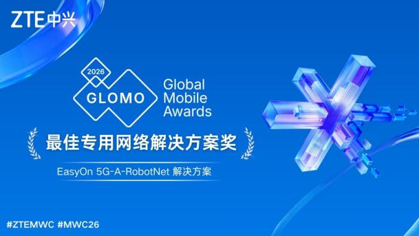 当地时间3月4日,2026年世界移动通信大会(MWC26巴塞罗那)期间,GSMA全球移动大奖(GLOMO Awards)评选结果正式揭晓。中兴通讯凭借持续的技术创新与深度的行业融合实践,成功斩获 “最佳专用网络解决方案奖”、“开放网关挑战奖”和“最佳活动营销奖”,充分彰显了中兴通讯5G-A 专用网络赋能具身机器人及大型演唱会直播等行业场景化应用以及在开放网关创新等领域的领先实力,其创新成果再次获得全球通信行业的高度认可与权威认定。