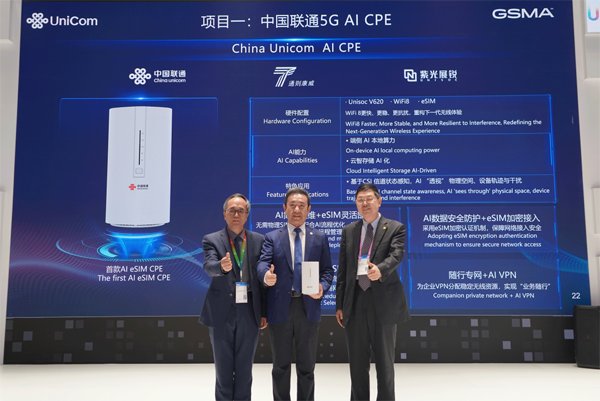 活动现场,紫光展锐与中国联通、通则康威正式启动5G AI CPE项目,该产品将搭载紫光展锐V620芯片,深度整合云智存储、AI Wi-Fi、无缝Mesh、随行专网四大核心能力,以端侧AI算力重塑家庭与企业移动场景的数字体验,为智慧家庭、中小企业办公、工业应用等多场景提供安全、高效、智能的网络解决方案。