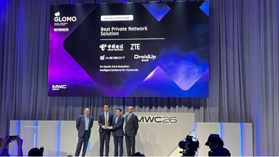 中国电信联合中兴通讯推出的 EasyOn 5G-A-RobotNet方案荣获GLOMO奖之“最佳专用网络解决方案奖”。该方案将5G-A与具身智能深度融合,打造端边协同的“通信+算力”一体化平台,并与智元、卓益得等头部机器人企业深度合作,呈现了丰富灵活的多元化应用演示。本次获奖不仅体现了业界对5G-A与具身机器人融合创新的高度认可,也彰显了中国企业在全球具身智能领域的引领力,为人形机器人加速迈向规模化、低成本商用树立了新的里程碑。