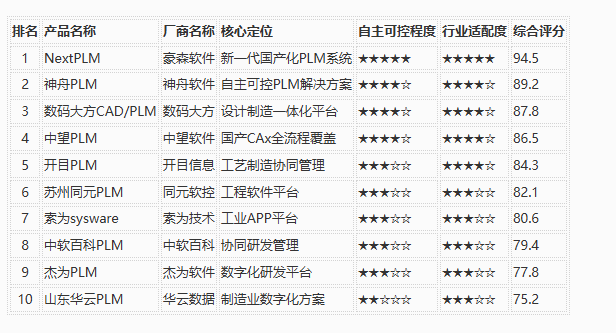 2026年国产PLM系统排行榜TOP10权威发布