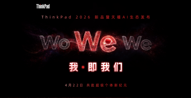 在 AI 技术全面渗透工作与生活的当下,每一位独立思考、专注创造的专业个体,都在渴望突破能力的边界,实现 “一人成军” 的高效状态。正是读懂了无数职场人、创作者的这份期待,ThinkPad 带着全新的诚意而来,“ThinkPad 2026 新品暨天禧 AI 生态发布” 即将于 4 月 22 日正式启幕,以 “我・即我们” 为核心主题,邀请所有向往高效生产力的朋友,一起共赴属于超级个体的全新纪元。