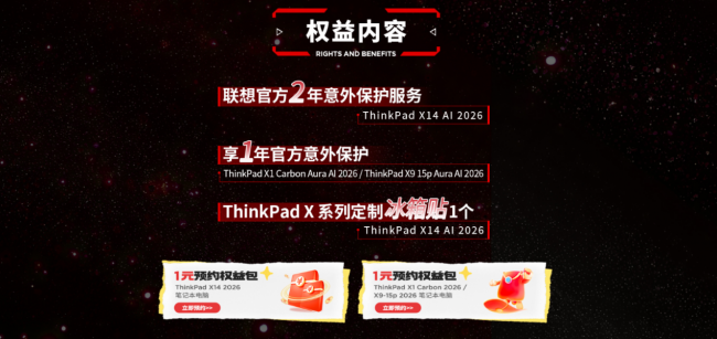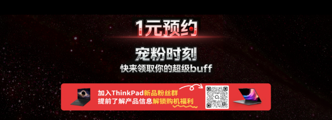 为了让每一位期待新品的用户都能提前享受到专属礼遇,在发布会正式揭幕之前,ThinkPad 就已经提前上线了诚意满满的宠粉福利,用实打实的优惠,回馈一直以来支持品牌的粉丝们。其中最让人惊喜的,莫过于本次重磅推出的 “一元预约” 活动,仅需极低的成本,就能提前锁定新品首销期的早鸟权益,这样的超值机会,在新品首发阶段可以说是难得一见。