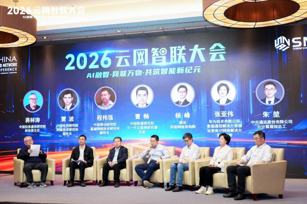 4月15日,“2026年·云网智联大会”在北京召开。本次大会以“AI融智,网联万物:共筑智能新纪元”为主题,围绕算力基础设施、自智网络、智能IP广域网、智算中心网络、算网安全、智能体互联网等一系列ICT基础设施领域的前沿热点技术、应用场景、产业发展和商业落地方案展开深入而广泛的讨论。