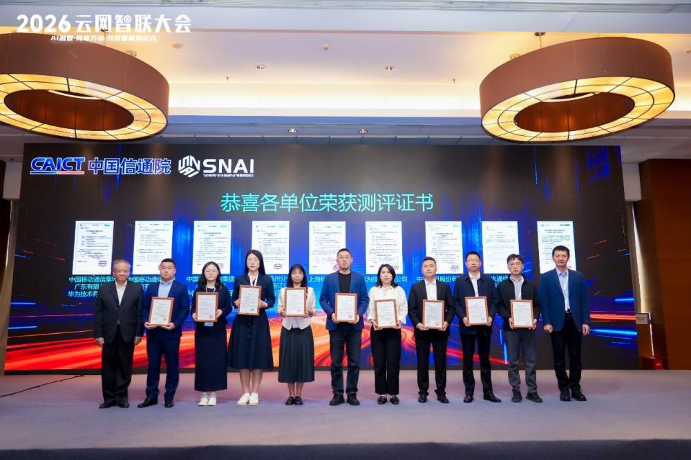 2025年,CCSATC610推委会与产业伙伴通力合作,通过技术标准研制、方案试验验证、评估测试等方式,加速推动网络的自动化、智能化演进。在过去一年,行业又涌现出一批网络能力产品和解决方案,通过了中国泰尔实验室网络能力水平检测。本次大会邀请闻库理事长和敖立副院长共同为广东移动、北京移动、杭州电信、上海科技大学、华为、中兴、烽火通信、紫金山实验室颁发网络能力等级测评证书。