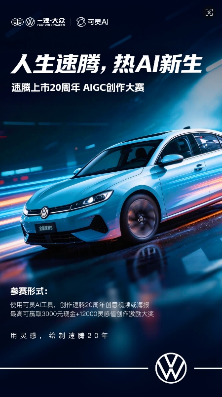 揭秘吧,这是速腾上市20周年之际,一汽-大众联动可灵AI发起的“人生速腾,热AI新生”AGIC创作大赛。主打一个“你只管脑洞创意,剩下的交给可灵AI”。“品牌主题明确+AI工具给力+快手‘老铁’热情”造就了上述高爆素材。