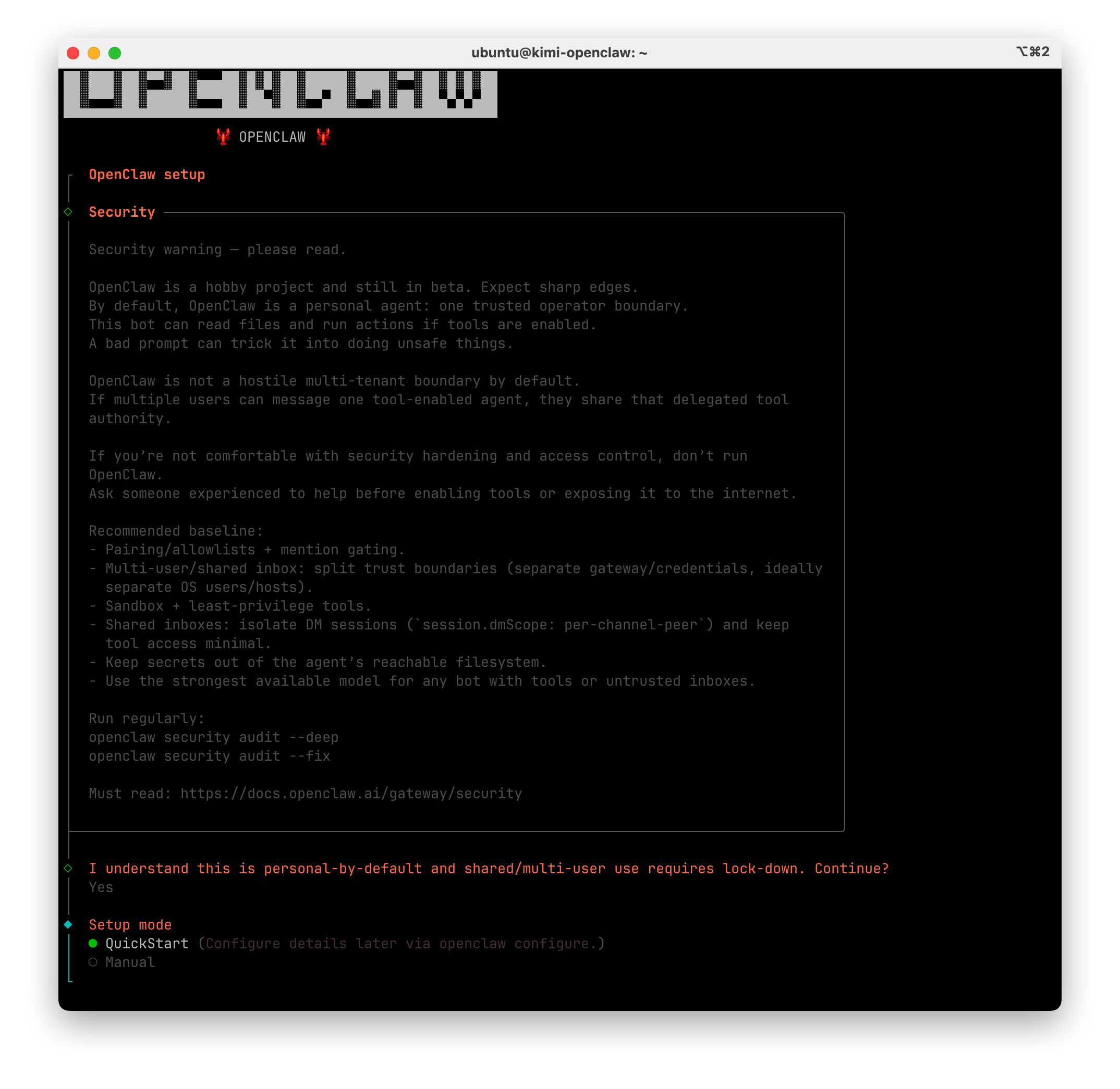 选择你 OpenClaw 的技能和一些配置,选择 Yes