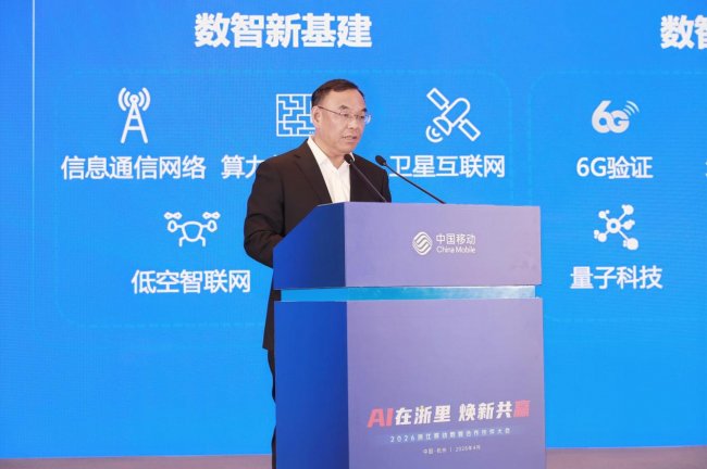 浙江移动党委书记、董事长、总经理杨剑宇在会上表示,作为网络强国、数字中国主力军,浙江移动在“十四五”以来积极拥抱“互联网+”向“人工智能+”范式跃迁,与合作伙伴携手打造了一批标志性成果:推动移动网络从5G向5G-A演进,宽带网从百兆向千兆、万兆跨越,加快多层级算力基础设施布局,通算算力超300万vCPU,智算算力达9.1EFlops,推出了5G新通话、云手机等丰富的生活数智化产品,打造国家级5G工厂51家,省级未来工厂55家,赋能中小企业数字化改造超1000家,参与建设全省电子政务视联网、政务云、低空经济平台,打造业内领先的AI视觉大模型和政务、金融、教育等30余款行业专属大模型,构建了2300余个智能体,为引领智能经济演进、促进智能社会繁荣贡献了力量。