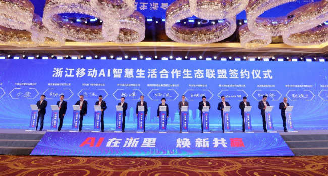 会议现场还举行了浙江移动AI智慧生活合作生态联盟签约仪式,联盟将聚焦智慧家庭、智能终端、数字服务等核心领域,打造一站式集成赋能平台,让AI更普惠、让生活更智能。