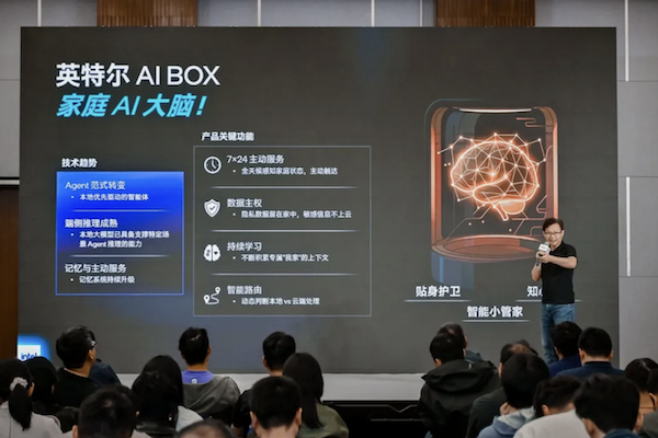 英特尔将AI创新延伸至家庭场景,推出了“家庭AI大脑”——AI Box。它构建了以家庭本地算力为核心、云端能力为辅的混合智能架构。作为部署于用户家中的私有AI中心与智慧中枢,它从架构层面强化了家庭数据的保护,让用户从容享受AI的便捷。