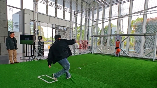 “门将”之所以身手如此出色 ,背后是6G通信、 边缘计算与人工智能融合应用能力的支撑。“借助6G技术,通过高速视觉采集实时获取足球运动轨迹,并依托6G毫米波网络实现数据的低时延传输与处理。Al-Edge平台完成目标识别与轨迹预测后,经由高可靠无线链路下发控制指令,实现毫秒级响应与精准拦截。”紫金星宇现场工作人员告诉记者。