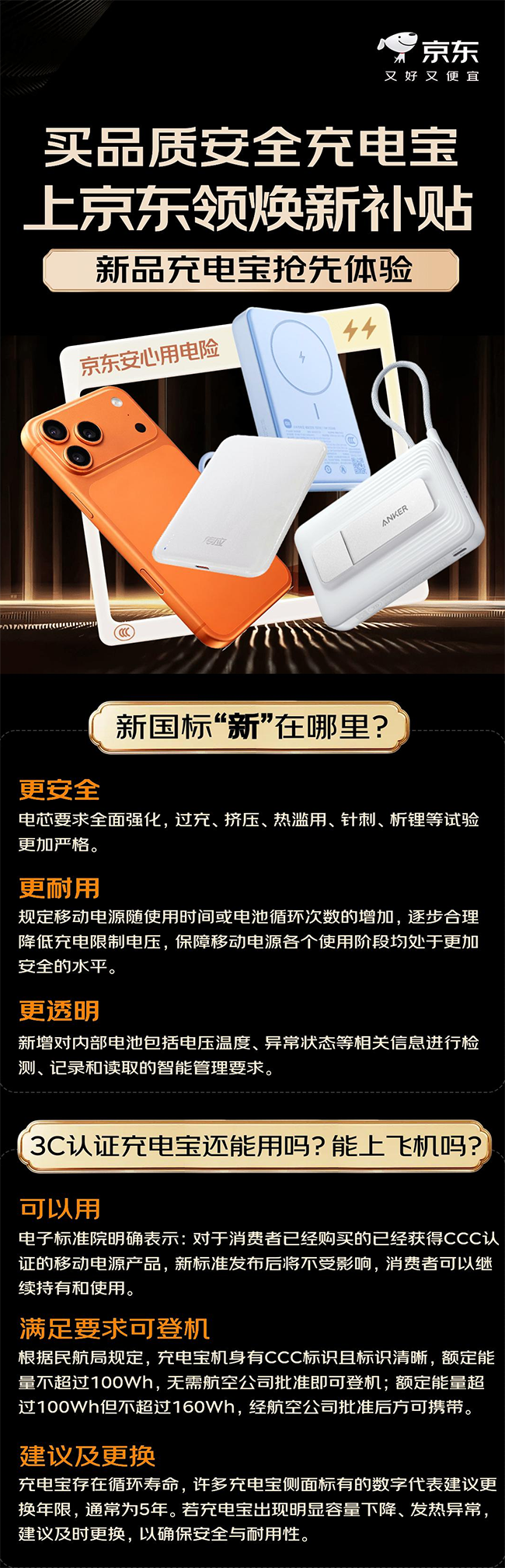 京东“品质充电宝联盟”上线 “安心用电险 2.0 服务”保上飞机、保安全