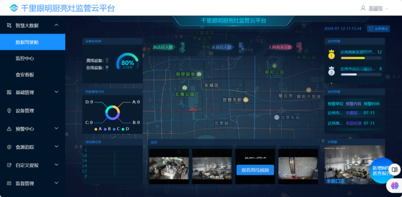 近期,中移物联网有限公司(以下简称中移物联)携手中国移动通信集团四川有限公司达州分公司(以下简称达州移动)与达州市高新区相关部门合作,基于中国移动千里眼明厨亮灶解决方案搭建了一套明厨亮灶管理系统。该系统依托中国移动云网能力优势,以千里眼平台核心能力为基础,深度融合市场监管部门行业需求,面向政府部门、餐饮企业、社会公众三端提供不同应用服务,打造“政府监管+企业自律+公众监督”的创新监管方式。同时,该系统依托千里眼“视频算力一张网”、AI新技术的高度融合,以高清智能视频能力为核心,以千里眼明厨亮灶为入口,北向将视频能力、AI分析能力等基础核心能力开放,广泛接入优质合作伙伴、对接各地市场监管平台、外卖平台。