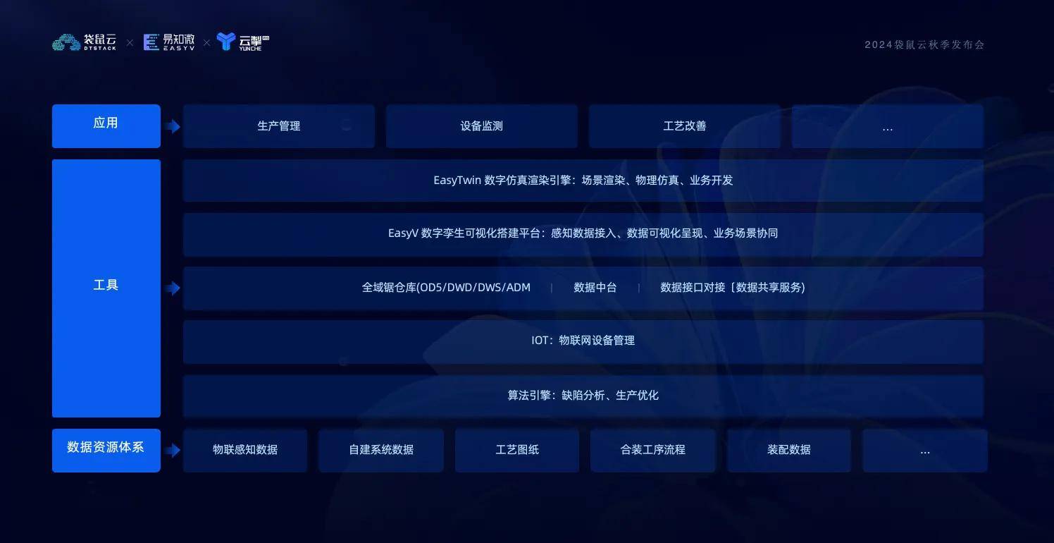 在发布会上,易知微EasyTwin产品负责人酒一发表了题为《EasyTwin:全方位升级,打造高质量数智化孪生应用》的演讲。以发动机生产为例,与大家详细的分享了EasyTwin2.0版本的孪生场景应用和功能演示。着重展示了如何使用EasyTwin实现更复杂、更具备业务深度的孪生场景,通过EasyTwin2.0实现孪生场景,整体过程会更高效、更低成本。(https://easyv.cloud/easytwin)