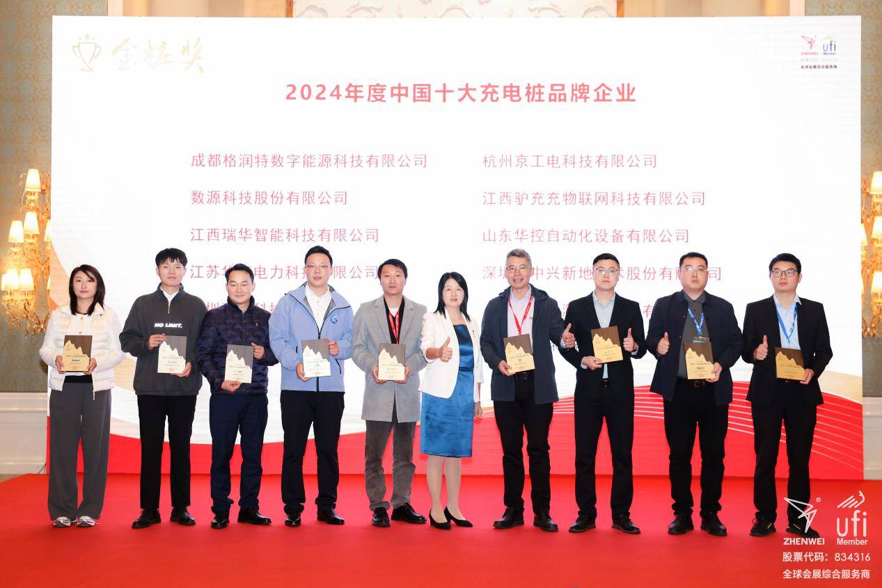 当天晚上,第九届金桩奖中国十大充电设施品牌颁奖盛典如期举行,星星充电、科华恒盛、京能新能源、先控捷联、麦格米特、优优绿能、瑞华智能、电闪加、举视、格润特、驴充充、超翔新能源、华衡电力、中兴新地、慧驰、数源科技、凯瑞集团、光导科技、星充新能源、杭州京工电、奥福德、安和威、安富新能源、森源电气、充电蜂、迈依达、青岛铭锋、车充卫士、蓝天能源、闪烁、蔚景科技、优力特、海甬威、莘辰智能、奥能电源、广州市公用公交、易电创新、迪文、宇月等获奖企业及品牌均出席本次盛典。