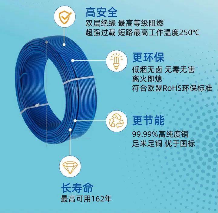 远东的“绿色基因”始于材料创新。针对传统电线普遍存在的导电性能一般、绝缘层老化快等问题,远东研发的家装电线全部采用99.99%高精度无氧铜导体,采用电解提纯技术,导电性能明显提升,从源头减少电能损耗。生态级低烟无卤材料,燃烧时无有毒气体释放,符合欧盟RoHS环保指令,燃烧发烟小,燃烧透光率≥60%,火灾逃生可视时间延长3倍以上。70-162年超长寿命设计,绝缘层耐温材料耐温125℃,抗老化性能提升至普通电线的3倍,减少因频繁更换导致的资源浪费。