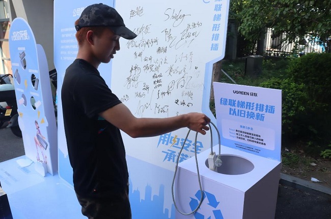 针对宿舍用电场景,绿联在活动现场设立了回收点,推出以绿联T6梯形排插为主题的“以旧换新”计划。