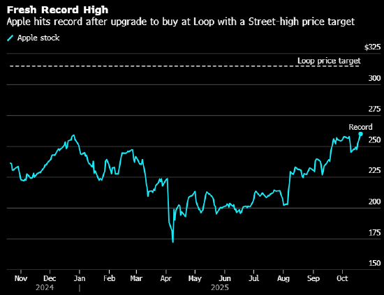 苹果公司股价在周一创下2025年新高,此前Loop Capital将其评级从“持有”上调至“买入”,成为最新一家看好iPhone需求趋势的投行。