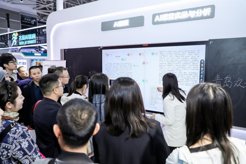 展区内,科大讯飞新一代AI黑板吸引了大量教育工作者的关注。它通过护眼技术与沉浸声场保障学生视听健康,让教室各位置均能清晰观看与聆听;构建了以语音为核心、融合触控与视觉的全自然人机交互体系,教师“一句话”即可调用资源、生成内容,极大提升教学效率。
